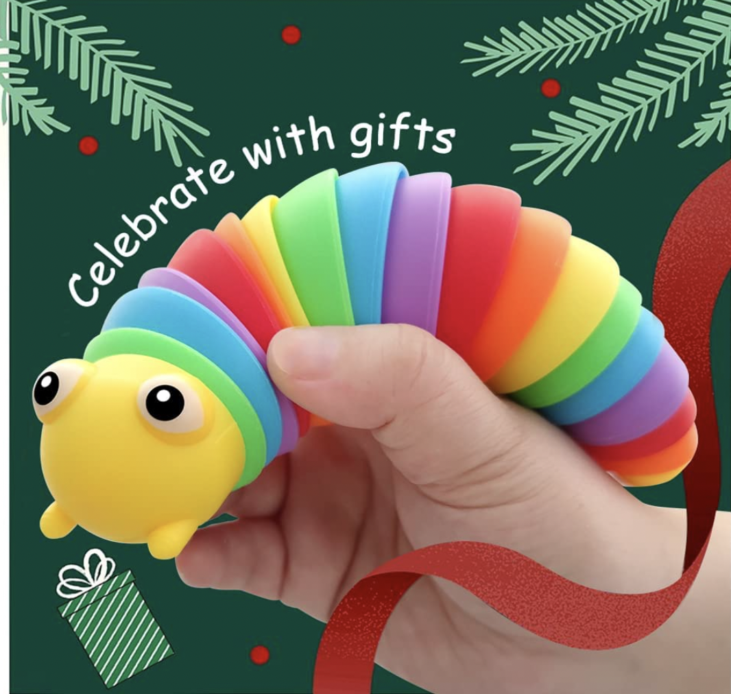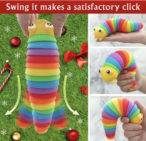 - Vibrant and colorful rainbow caterpillar fidget toy.