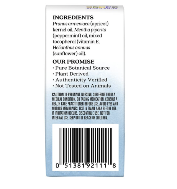 - Convenient roll-on bottle containing 9.2 ml (0.31 fl. oz.) of pure peppermint essential oil.