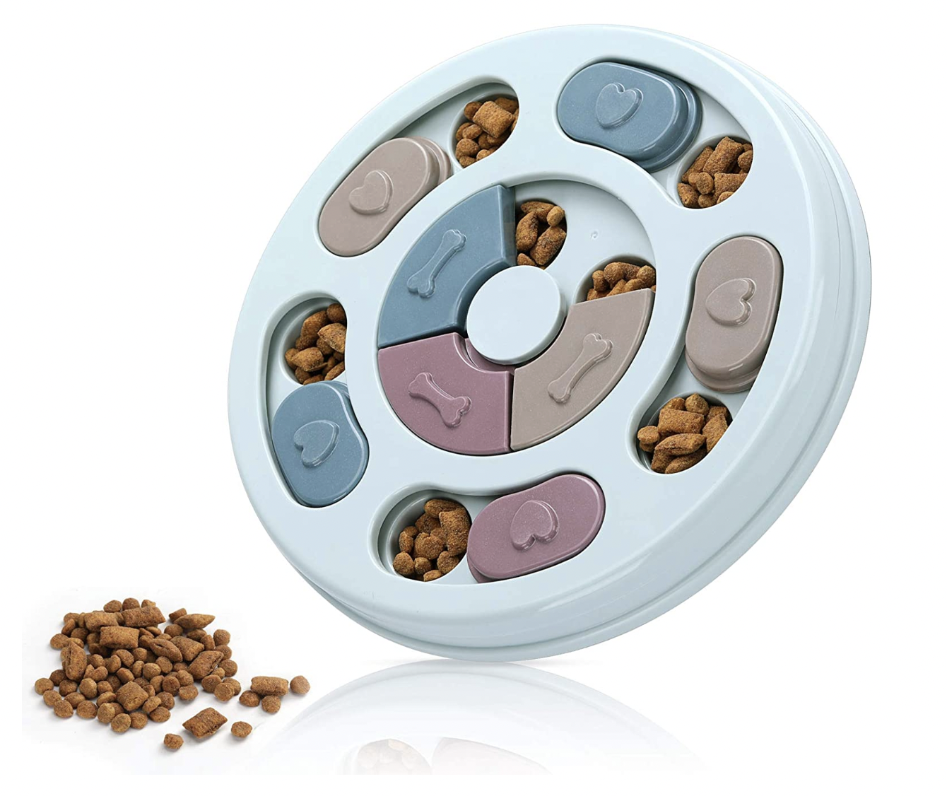 My puppy likes hunting for her Cherios in the puzzle. Would be better if it were a little more challenging. Doesn’t take too long to find the treasure.