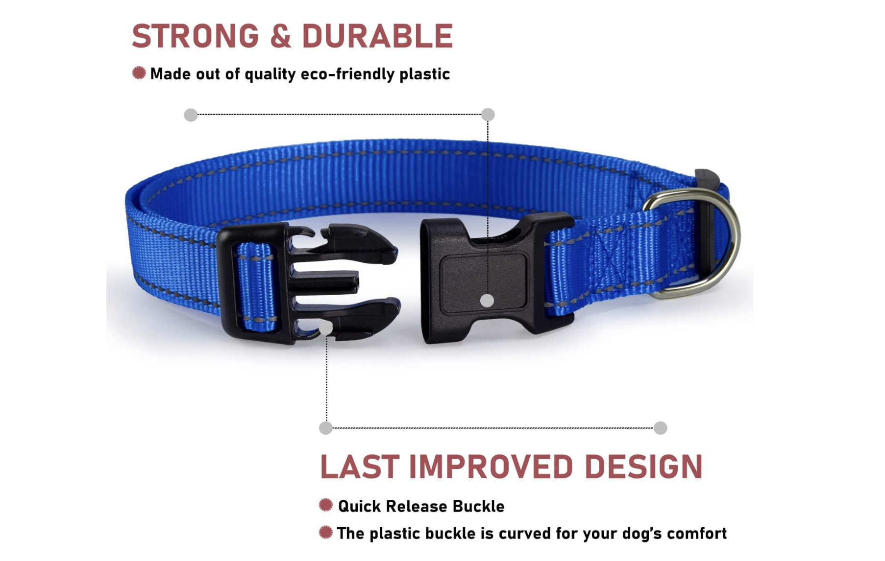 - Easy to use: The buckle closure allows for quick and hassle-free putting on and taking off of the collar.