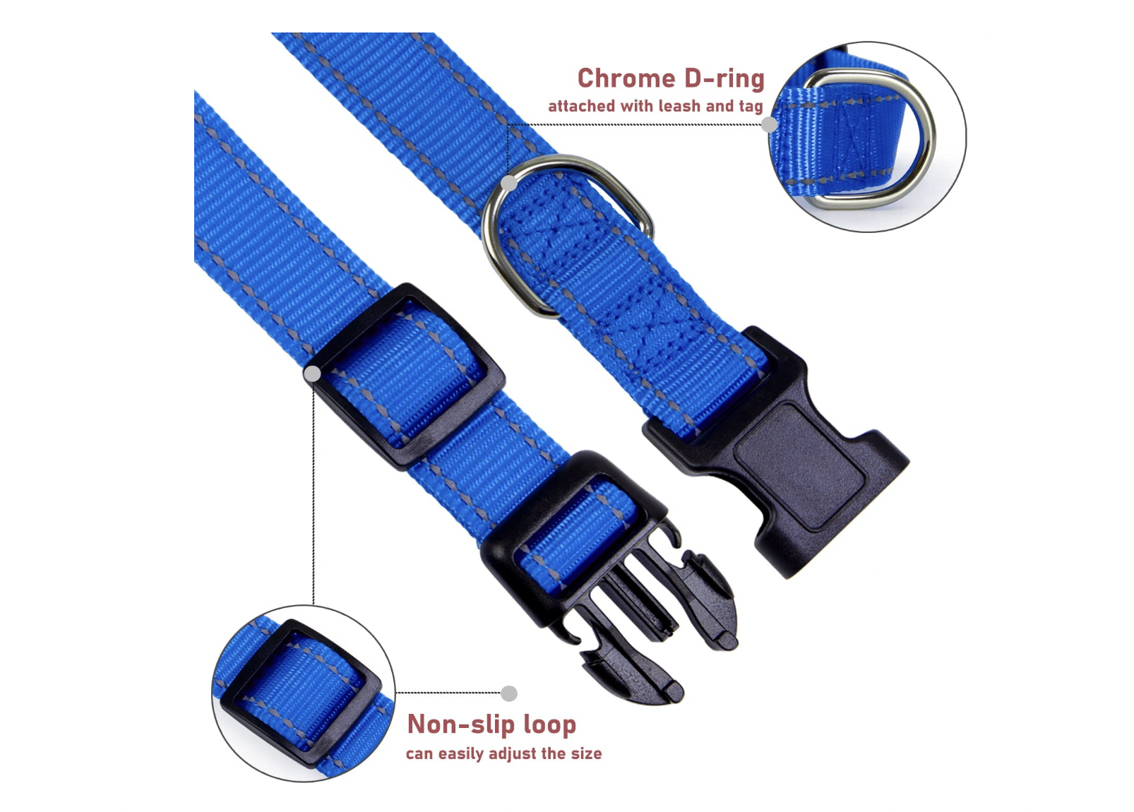 - Reflective buckle: The collar features a reflective buckle, increasing visibility during nighttime walks or low-light conditions.