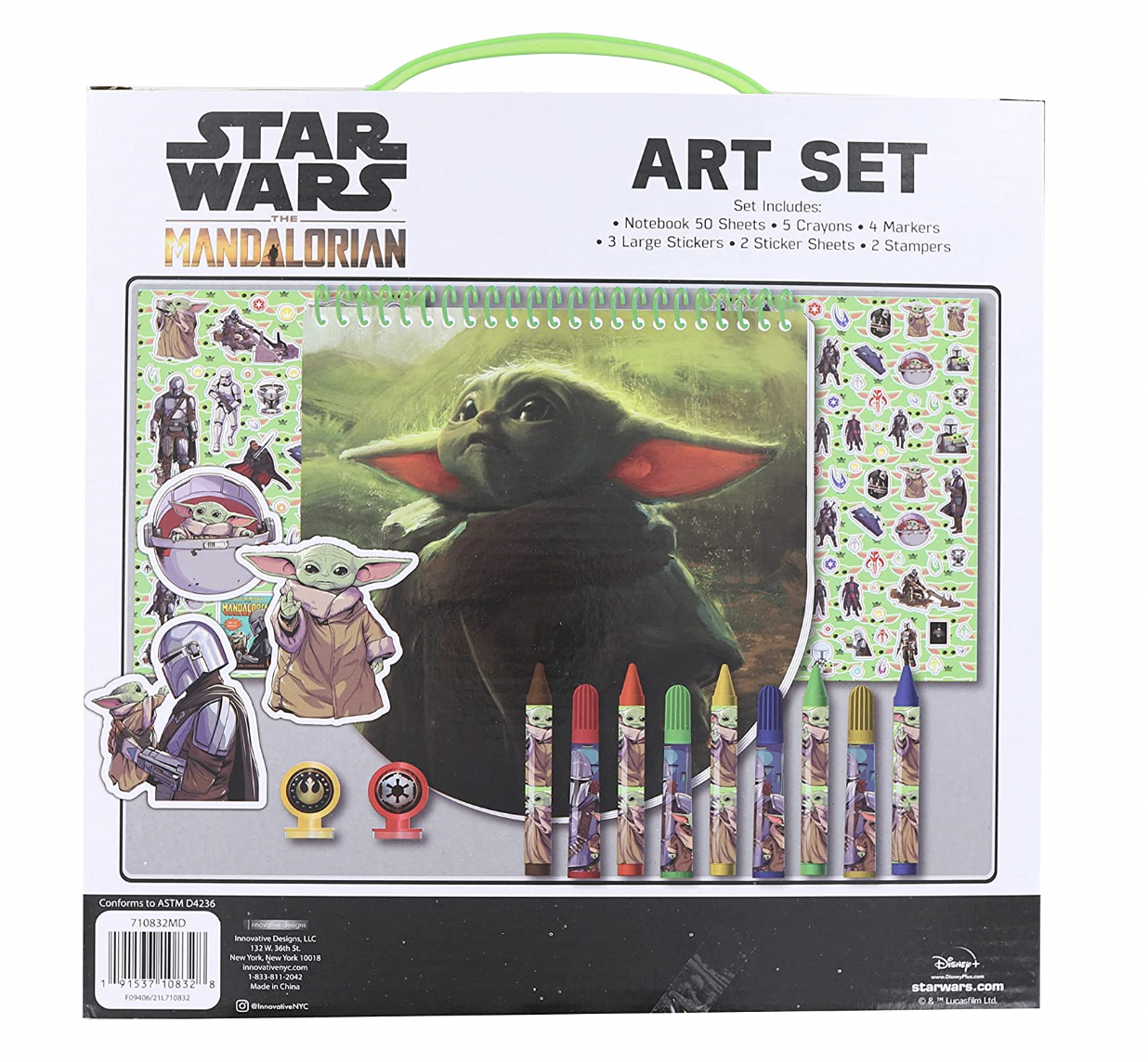 - 17-piece art set inspired by the popular Star Wars series, The Mandalorian, featuring The Child Grogu.