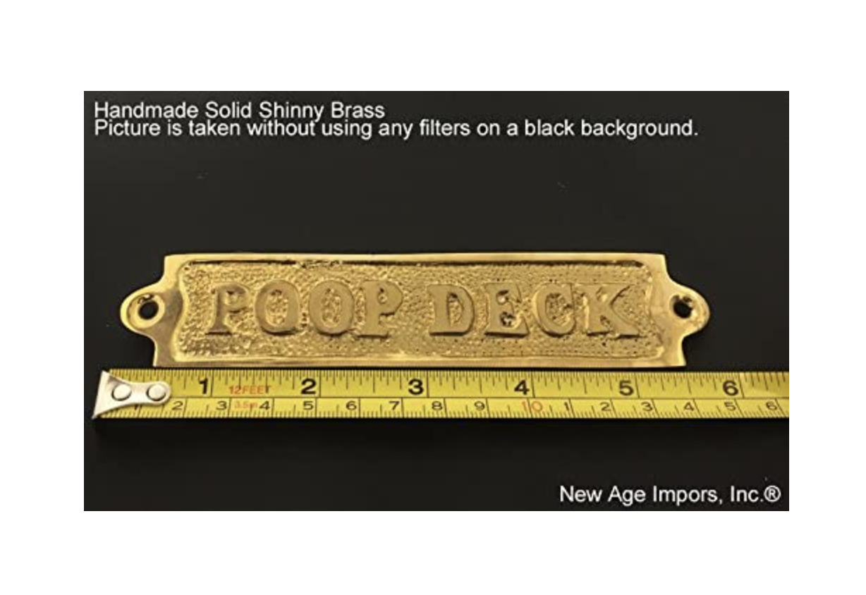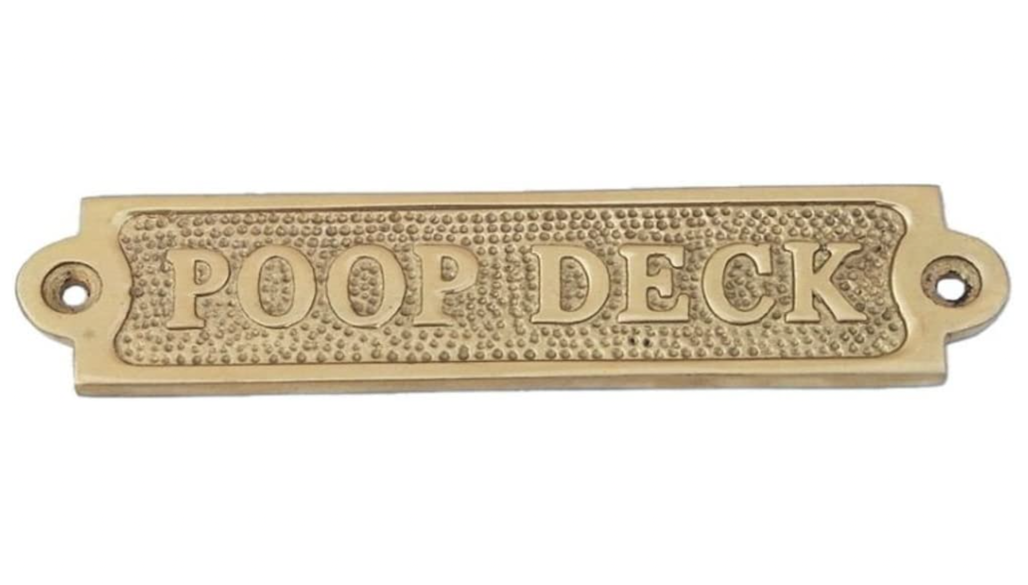 - Features the humorous and novelty “Poop Deck” sign, adding a touch of fun to any space.