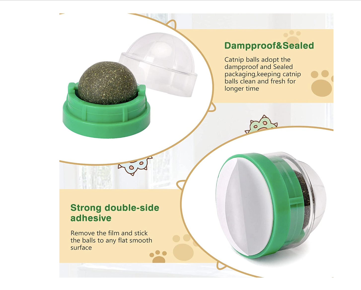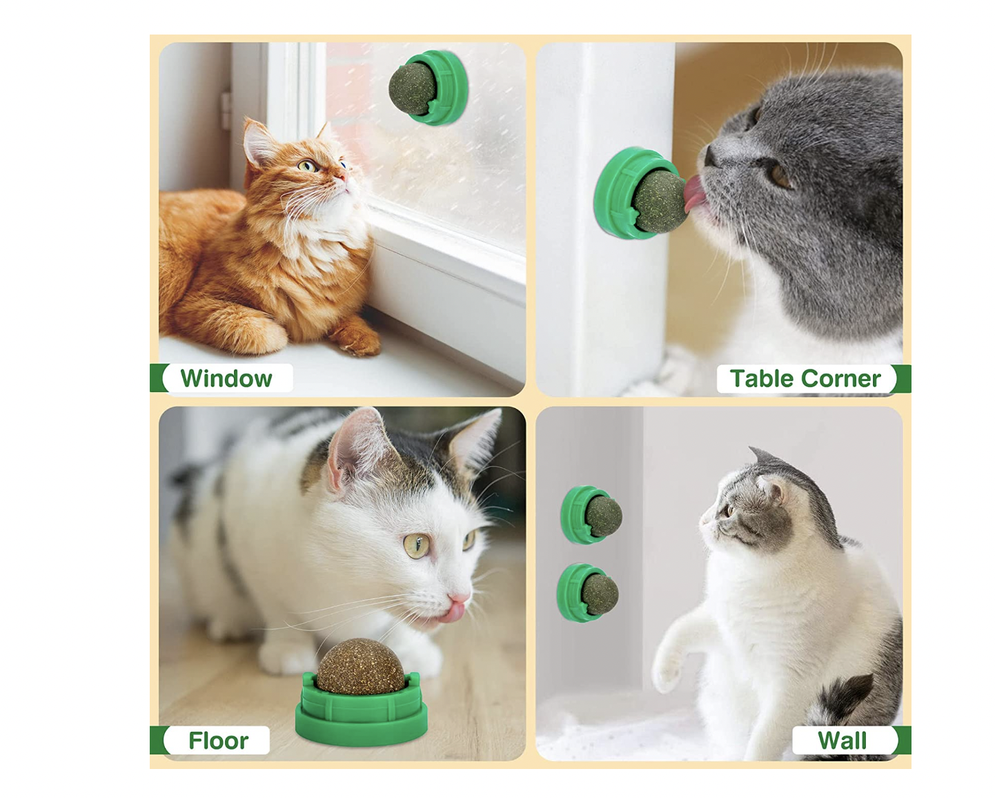 - Specially designed catnip ball encourages interactive wall play for added excitement.