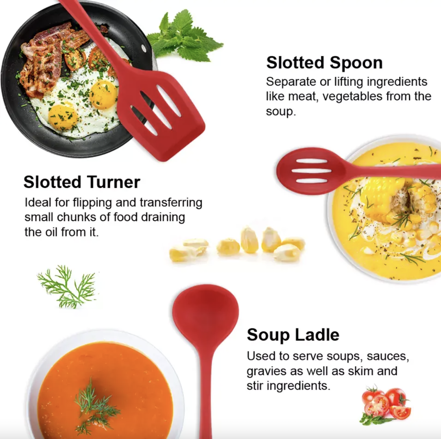 - Versatile utensils suitable for various cooking methods such as stirring, flipping, sautéing, and serving.