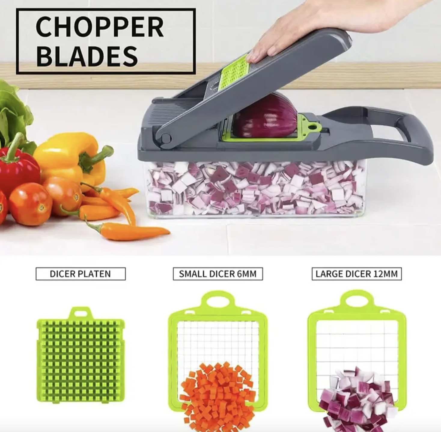 - Versatile 12-in-1 design allows you to dice, chop, and slice a variety of vegetables with ease.