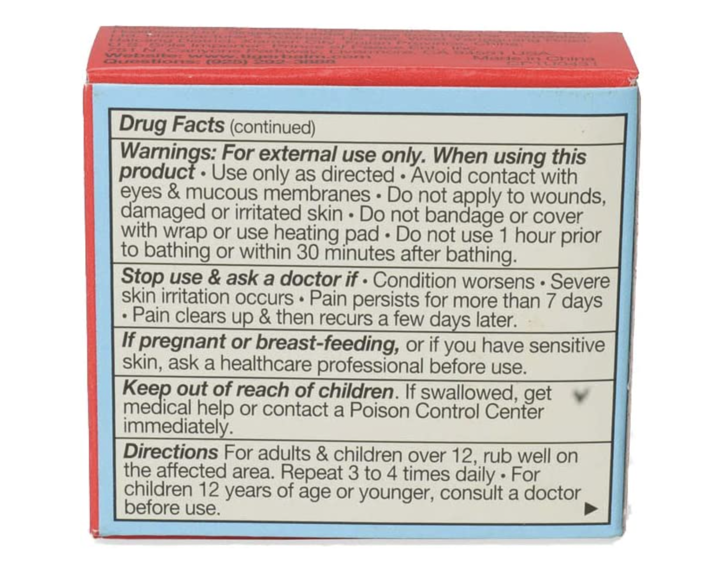 I didn’t realize I bought the little pocket size so it was all gone in a couple of days but everytime I smeared it on a painful joint I felt relief.